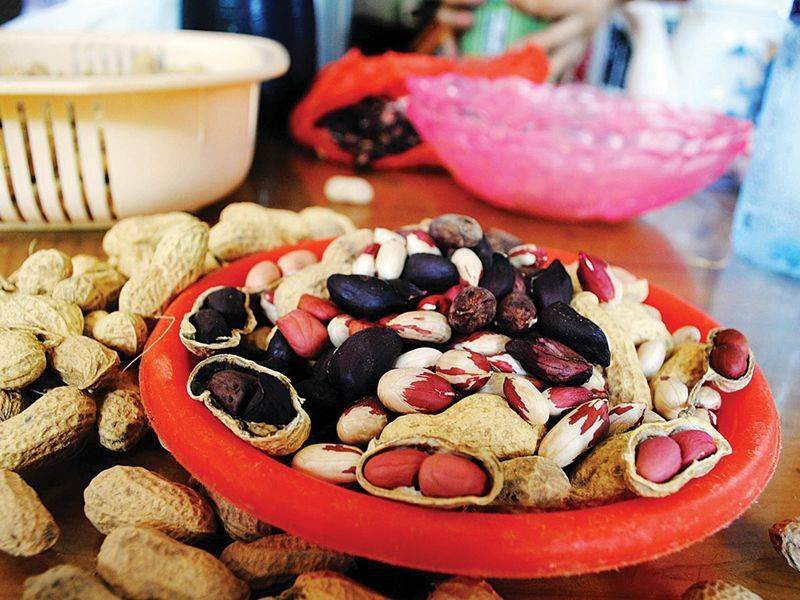 八月豆的炒制須經(jīng)過挑、泡、腌、曬、炒等工序,要靠看、聽、聞等經(jīng)驗(yàn)把握制作,其制作過程精細(xì),是頗具特色的傳統(tǒng)加工技術(shù)。一、泡水。首先把曬好的花生(帶殼)放入水池里浸泡2天,浸泡的目的是便于腌制時(shí)更好地吸收鹽分。二、腌制。把腌制好的花生撈起趁濕氣未盡撒鹽攪拌均勻,邊撒邊攪拌,按100近花生12斤鹽的比例,然后成堆用薄膜覆蓋嚴(yán)實(shí),不讓其透氣,使鹽分充分均勻吸收。2天后便可再曝曬3天。三、曝曬。浸泡2天后便可曝曬3天。四、炒作。將曬好的花生放入大鍋人工炒制。人工炒制為傳統(tǒng)大鍋,木柴明火,鍋里放入適當(dāng)比例的沙和花生一起炒,2人一組互為協(xié)調(diào)翻炒,有規(guī)律地進(jìn)行,每炒到20分鐘后要嘗試花生的爽脆是否適中。通常情況下,視其火候大小,半小時(shí)為一鍋。五、包裝。把炒好的花生入袋封口,裝箱、打包投入市場(chǎng)。