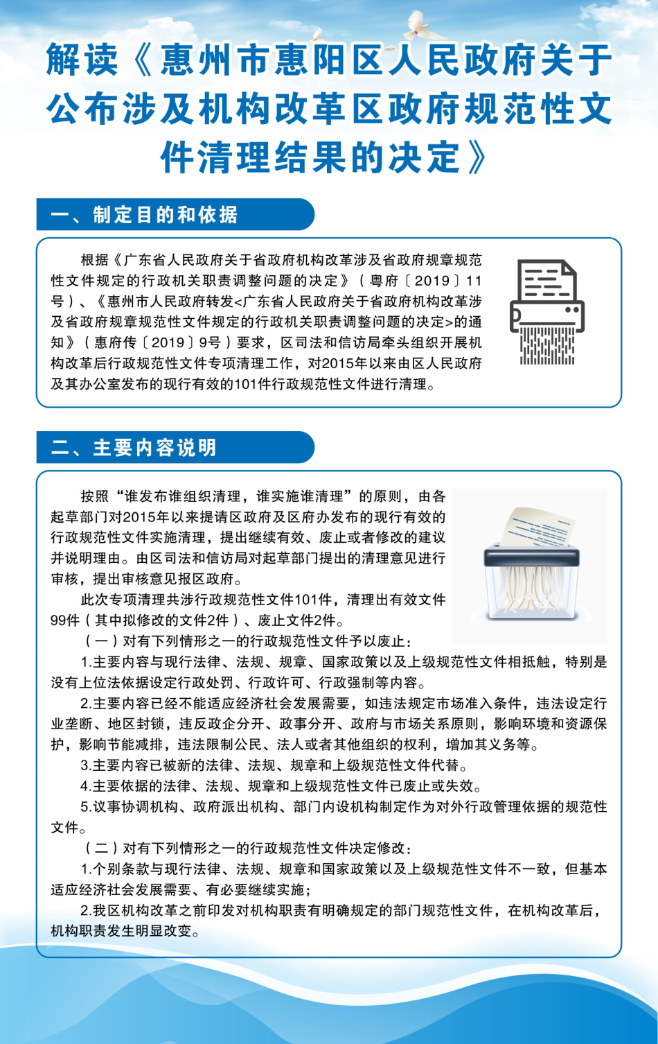動漫、圖文解讀《惠州市惠陽區人民政府關于公布涉及機構改革區政府規范性文件清理結果的決定》