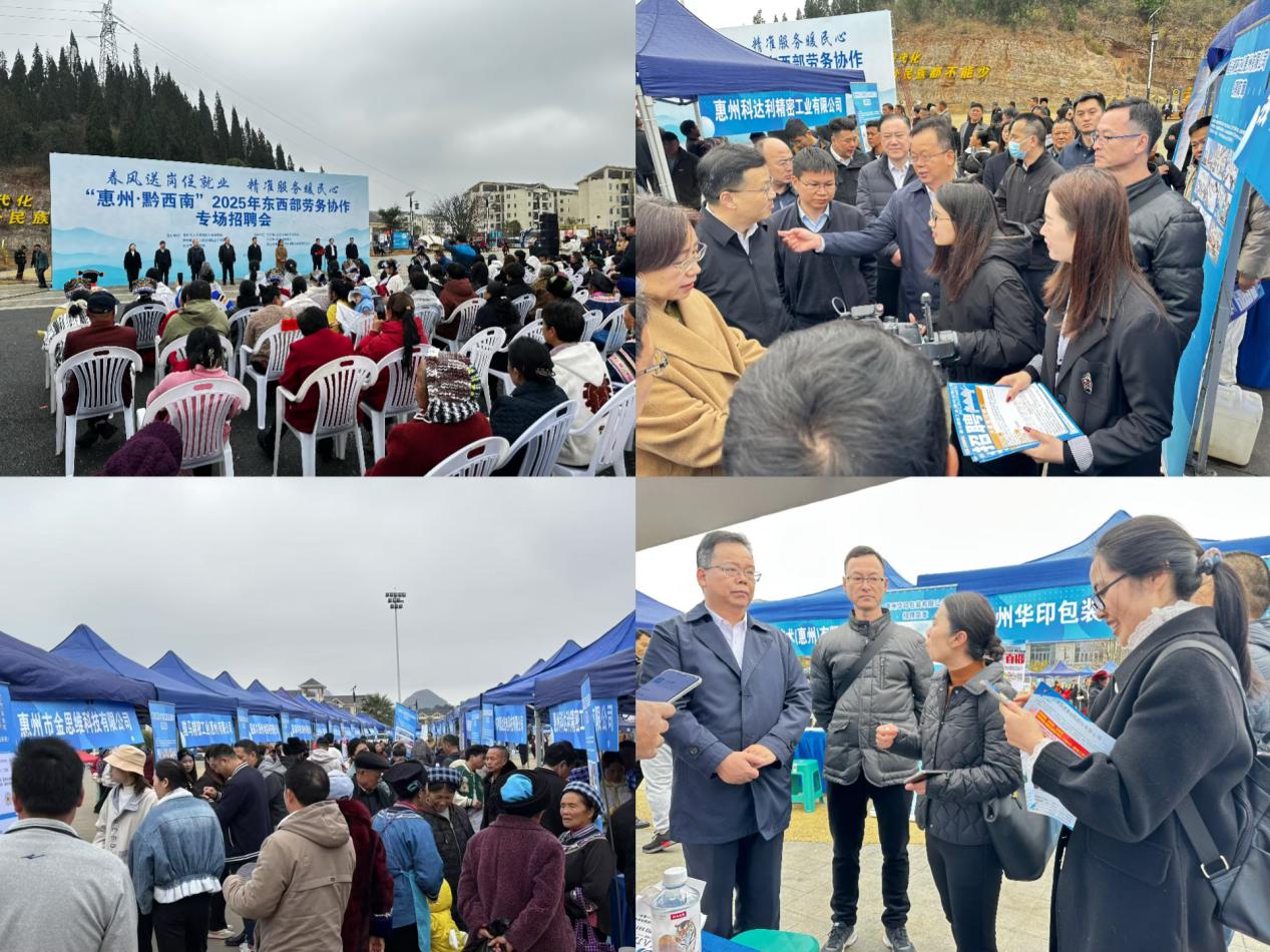 我區伯恩光學控股公司、駿馬精密工業(惠州)有限公司、廣東縱勝新材料股份有限公司等12家知名企業在當地參與了3場招聘會,共提供4500余個崗位,為兩地求職者與企業搭建溝通橋梁,助力當地群眾實現家門口就業,通過招聘會初步達成就業意向362人。