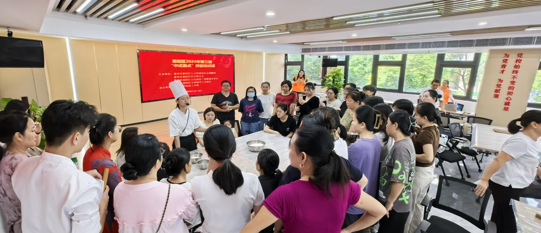 為深入實施“粵菜師傅”工程,提高勞動者中式面點制作的技能水平,9月10日,惠陽區2024年第三期中式面點技能培訓班在惠陽區三和街道黨群服務中心正式開班。此次培訓由區人社局、區婦聯、三和街道、區鄉村振興人才驛站主辦,惠州市華達技工學校承辦。面向城鄉未繼續升學的應屆初高中畢業生、農村轉移就業勞動者、城鎮登記失業人員、轉崗就業人員、退役軍人、企業在職職工和高校畢業生等各類有培訓需求的人員。