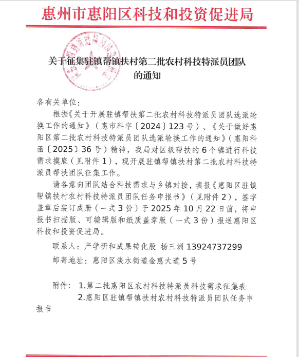 關于征集駐鎮幫鎮扶村第二批農村科技特派員團隊的通知