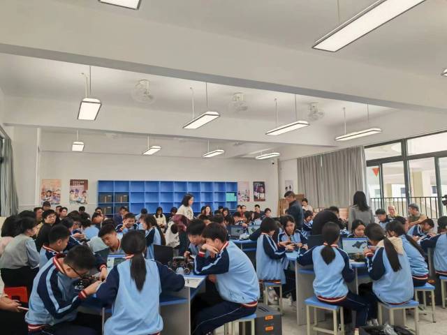 在惠陽區第七中學及附屬小學的AI課上,學生們通過小組合作形式,成功搭建多擬態人工智能教育機器人UGOT變形車。