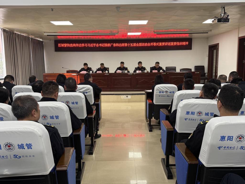 11月27日上午,惠陽區(qū)城管執(zhí)法局召開全體干部職工大會(huì),學(xué)習(xí)貫徹黨的二十屆四中全會(huì)精神、習(xí)近平總書記視察廣東和出席第十五屆全國(guó)運(yùn)動(dòng)會(huì)開幕式重要講話重要指示精神及省市區(qū)相關(guān)部署。