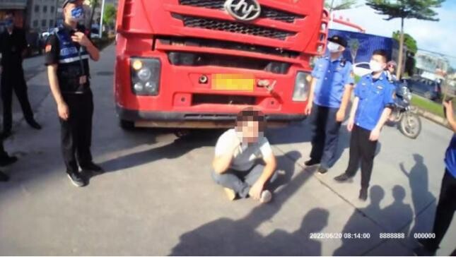 2022年6月20日凌晨2時45分,秋長街道執(zhí)法人員聯(lián)合交警部門開展執(zhí)法活動,巡查至秋寶路地段,發(fā)現(xiàn)一輛罐式運輸車涉嫌存在未經(jīng)核準擅自處置建筑垃圾,執(zhí)法人員告知車輛司機靠邊停車配合檢查,司機隨即配合停車檢查。
