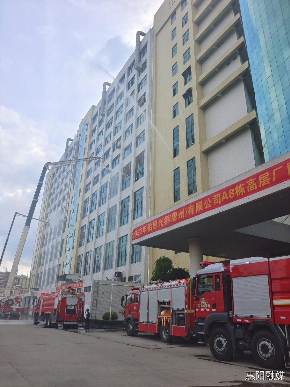 惠陽消防救援大隊(duì)、淡水消防救援站、秋長(zhǎng)專職消防隊(duì)、伯恩光學(xué)企業(yè)專職消防隊(duì)等接到警情后迅速趕赴現(xiàn)場(chǎng),并成立現(xiàn)場(chǎng)指揮部,救援部門按照職責(zé)和預(yù)案要求迅速開展救援工作。