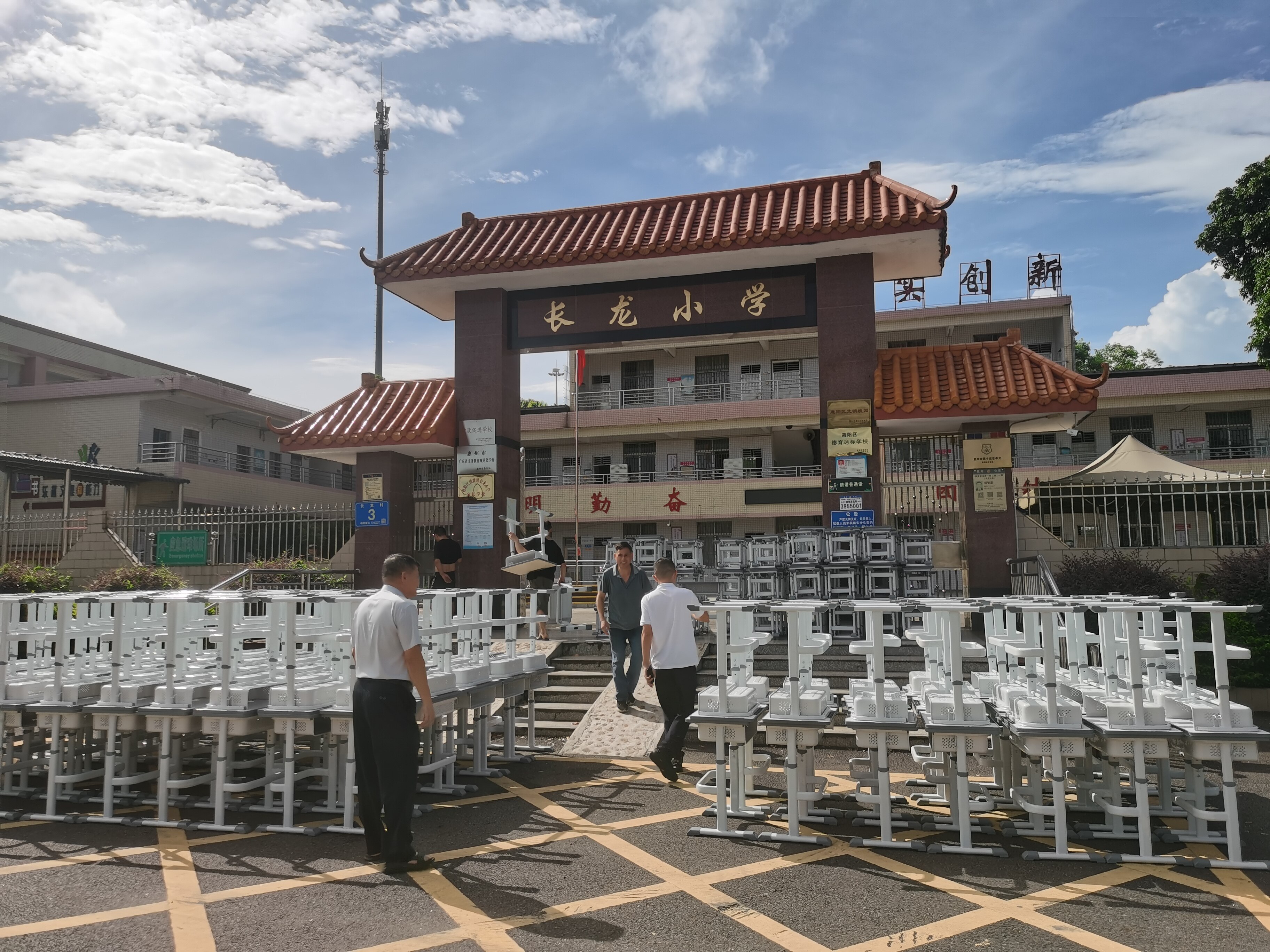 長龍小學:長龍村黨支部,捐贈8臺空調和300套新書桌椅
