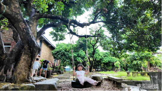 踏入庭院,精心布置的花卉景觀錯落有致,五彩斑斕的墻繪與周邊的綠樹紅花相互映襯,仿佛一幅生動的田園畫卷。據(jù)介紹,這座庭院不僅是一道美麗的風景,如今更成為了鄉(xiāng)村孩童們的精神樂園。利用經(jīng)營藝術機構(gòu)的資源,吳瑞娟以這獨特空間為載體,開辦了公益美術課堂,免費為孩子們上美術課,為鄉(xiāng)村的孩子們提供了一個充滿鄉(xiāng)村文化和藝術氛圍的學習場所。記者看到,院子里保留了不少農(nóng)耕器具,有用釘耙改造而成的石凳、有舊式木制脫谷機、有用石磨臺改裝的桌面,還有舊式打糕機......它們訴說著舊時的鄉(xiāng)村故事,成為了鄉(xiāng)村農(nóng)耕文化的傳播載體。在這里,孩子們可以盡情地發(fā)揮想象,在感受藝術魅力的同時,也加深對鄉(xiāng)村文化的理解和熱愛。
